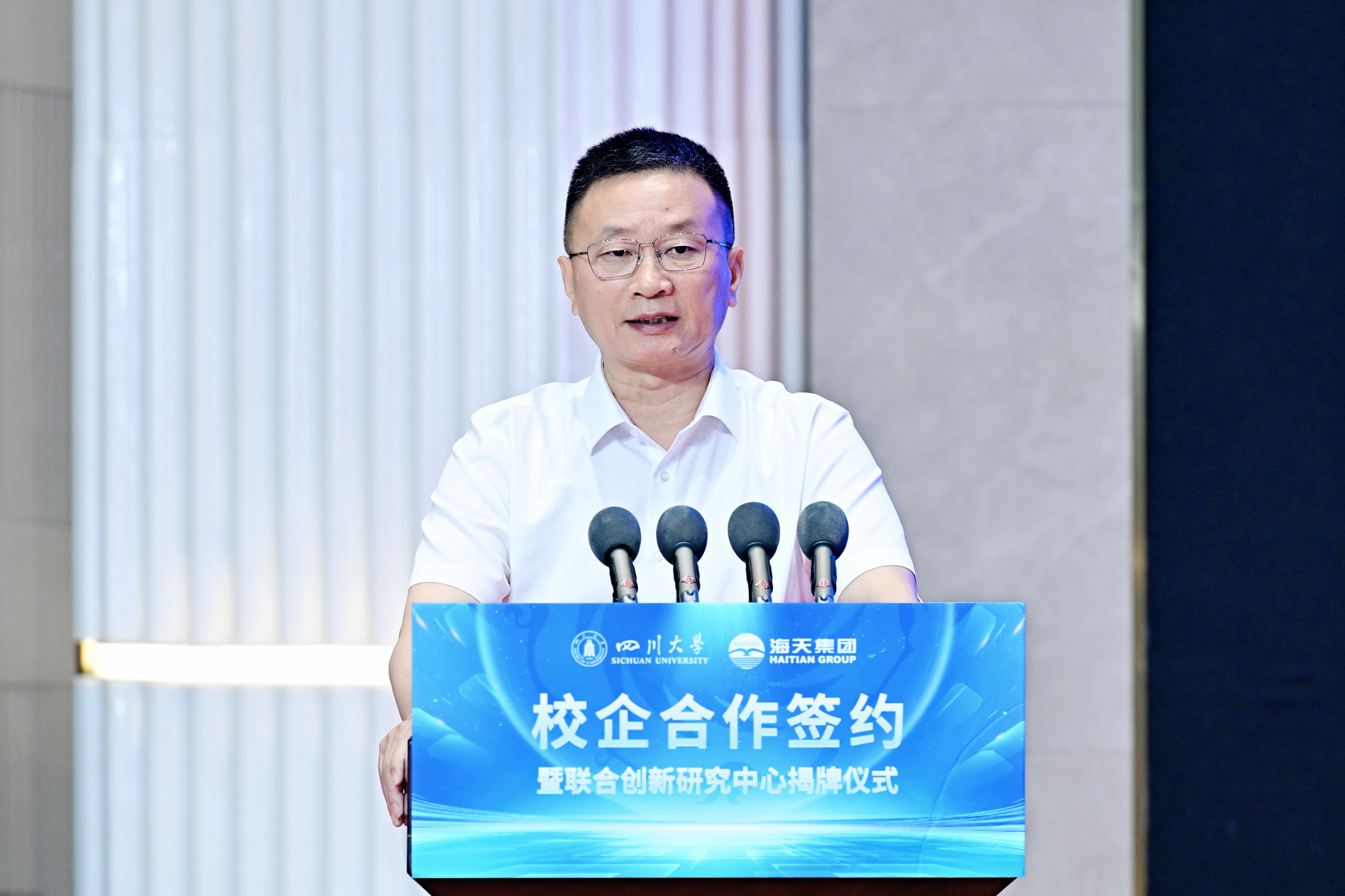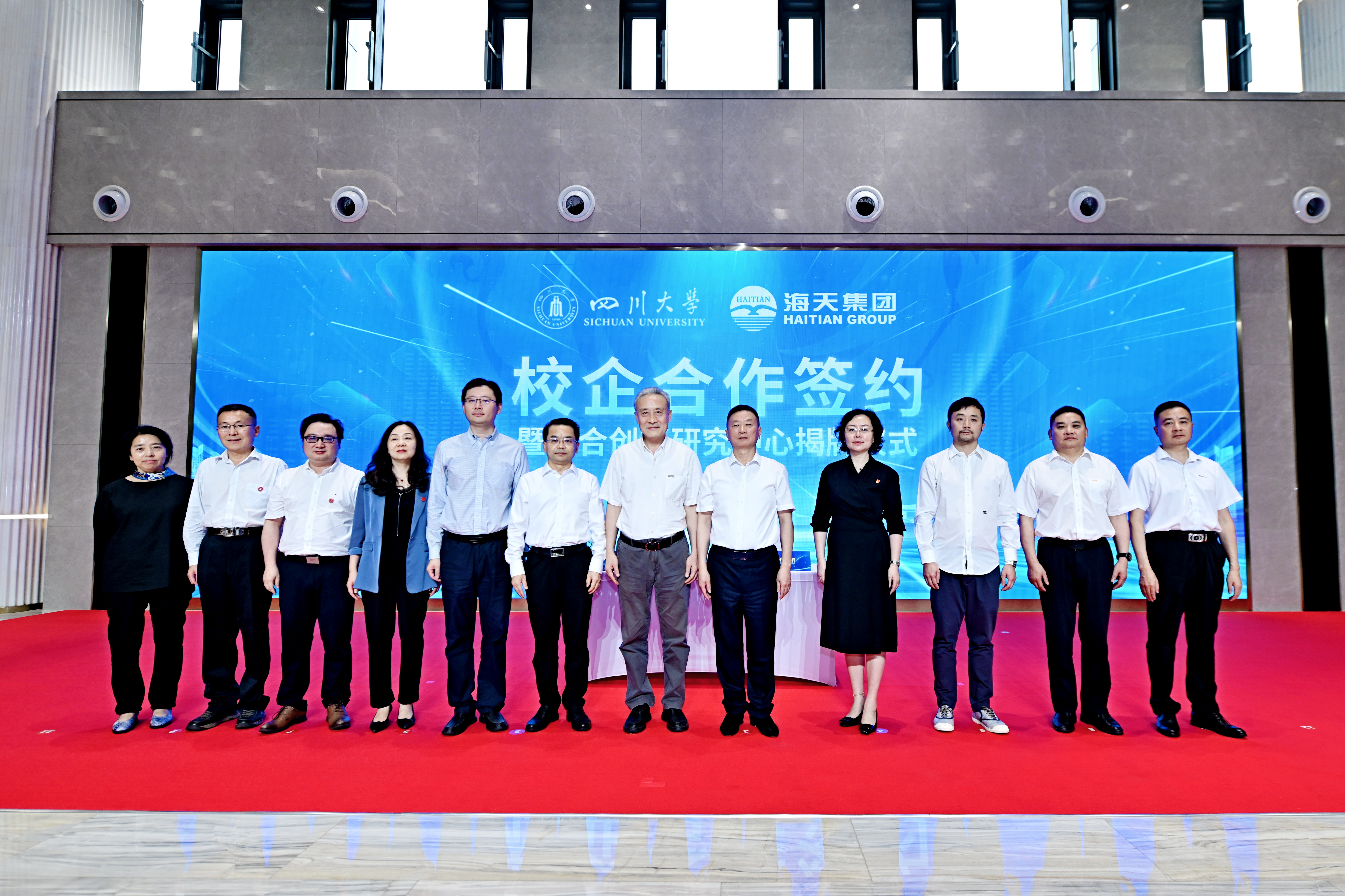 四川大学校长汪劲松、海天集团董事长费功全共同为“四川大学-海天集团联合创新研究中心”揭牌,标志着双方在产学研用领域的深度合作迈上新台阶。
