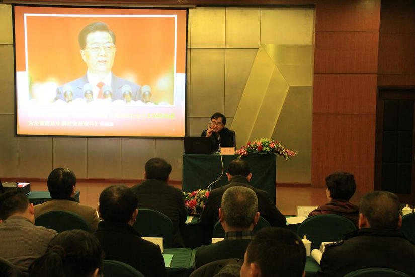 宣讲会由四川省十八大宣讲团成员、四川省委党校黄辉教授主讲。黄辉分别就十八大的主题、主要成果和报告起草过程,十六大以来的十年基本总结和科学发展观的历史地位,全面建成小康社会和全面深化改革开放的目标,经济建设、政治建设、文化建设、社会建设、生态文明建设的主要任务等七个方面做了三个半小时的宣讲。尤其是对生态文明建设做了突出强调。他指出十八大报告针对资源约束趋紧、环境污染严重、生态系统退化的严峻形势,第一次将生态文明建设单列论述;就其重要性、总体要求、制度建设做了详细阐述;并结合水务行业的公益环保性、民营企业发展政策支持和四川海天水务集团有限公司的经营理念、企业愿景、发展优势等,深入浅出地分析了生态文明建设对海天集团的形势和政策。